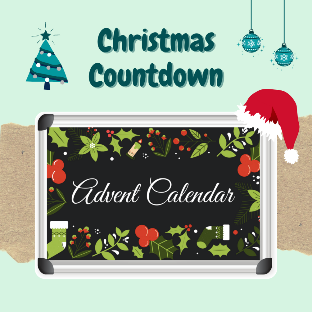 Calendario de Adviento online. 24 actividades entre las cuales encontrarás: Riddles, Emoji movies, Crosswords, I spy, Word search, Xmas poem, Song lyrics, What's on your phone, Funny quizzes, Tarsia, Scrambled words, Blind drawing, Menu designer, Scattergories & Pass the Word